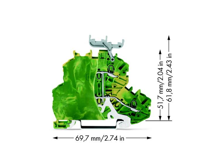 WAGO 2002-2237/099-000 PE Dbl. Deck w End Plate 4-cond. Gnd. Grn-ylw AWG 22-12
