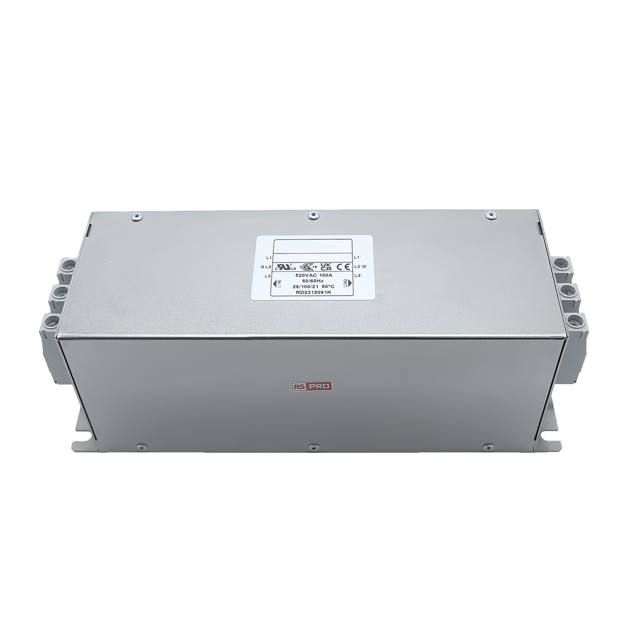13. Filtr sieciowy 100A 3-fazowy 220kΩ/1MΩ 300/520 V AC 50 → 60Hz 3 x 0,4mH RS PRO Montaż w obudowie 2914.72