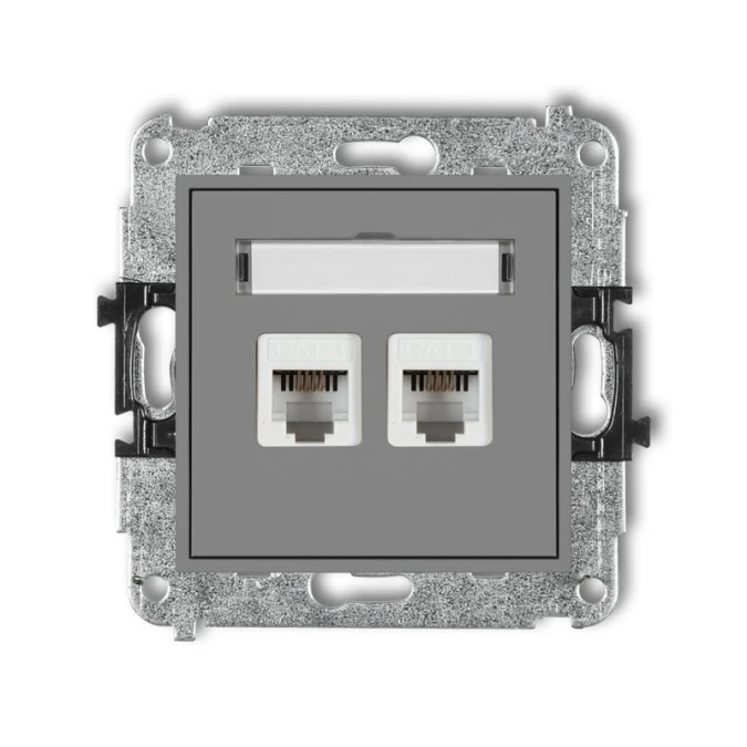 15. MINI Gniazdo telefoniczne podwójne 2xRJ11 4-stykowy beznarzędziowe szary mat 27MGT-2 58.29