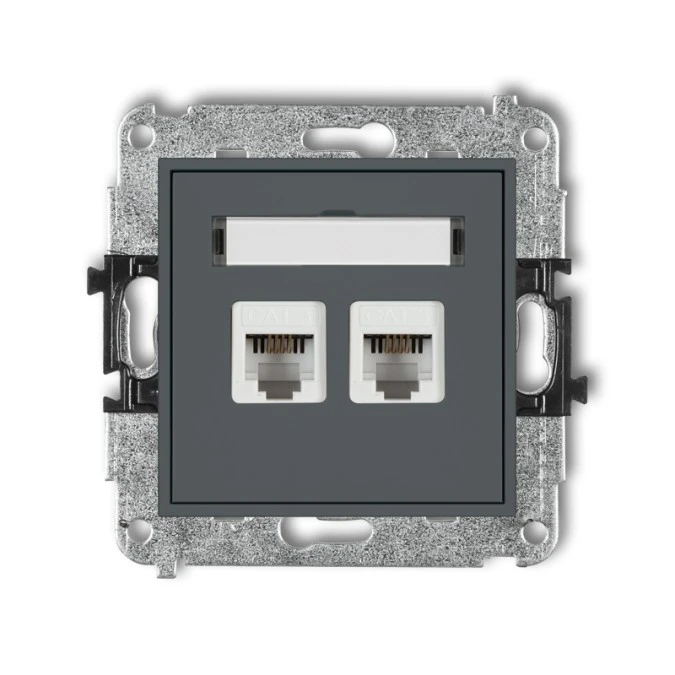 ICON Mechanizm gniazda telefonicznego podwójnego 2xRJ11, 4-stykowy, beznarzędziowe grafitowy mat 28IGT-2