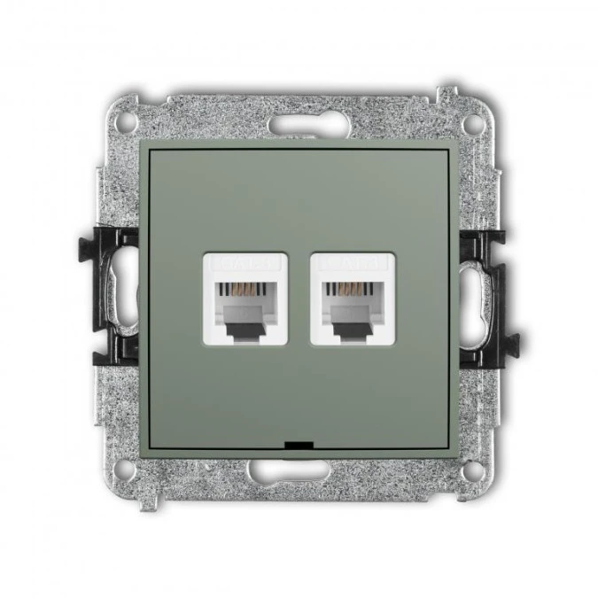 ICON Mechanizm gniazda telefonicznego podwójnego 2xRJ11, 4-stykowy, beznarzędziowe, bez pola opisowego szałwiowy 61IGTBO-2