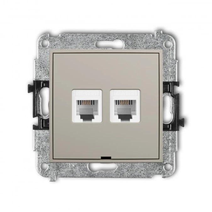 1. MINI Mechanizm gniazda telefonicznego podwójnego 2xRJ11, 4-stykowy, beznarzędziowe, bez pola opisowego taupe 60MGTBO-2 57.87