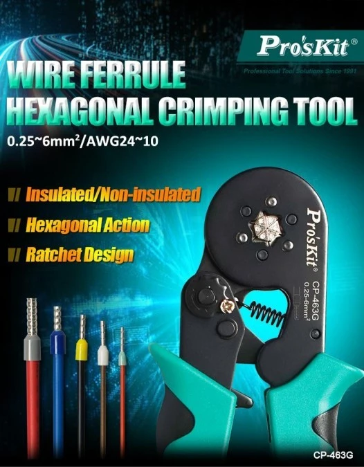 11. Zaciskarka zakończeń przewodów 0,25-6mm2 zacisk sześciokątny CP-463G 240.10