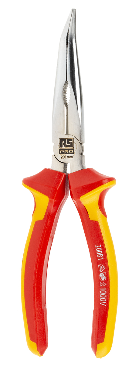 Szczypce płaskie długie Szczypce z długimi końcówkami RS PRO długość szczęk: 72mm długość całkowita: 200 mm Stal VDE