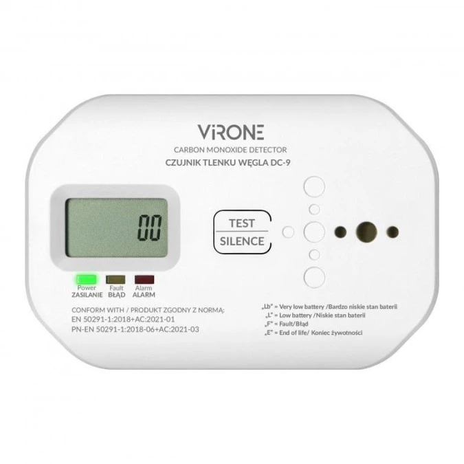 Bateryjny czujnik tlenku węgla (czadu), 2xAA, żywotność sensora 10 lat,DC-9