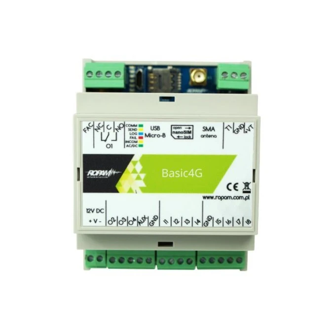 Moduł komunikacyjny GSM/LTE, 12V, 8 wejść, 4 wyjścia, DIN 4P, SMS-CLIP-E-MAIL, Basic4G-D4M