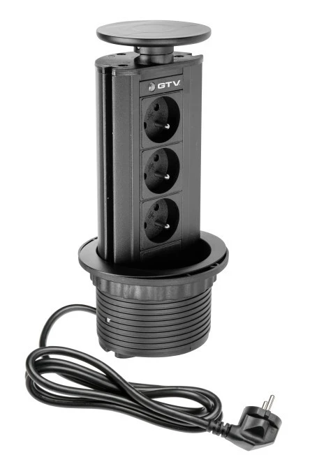 8. Przedłużacz biurkowy Biurkowy rozgałęziacz wpuszczany fi100mm czarny 3x gniazdo z uziemieniem AE-BPW3GU-20 110.09