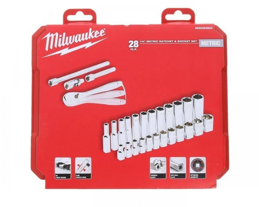Zestaw nasadek z grzechotką, typ metryczny 28 szt.. 1/4” 4932464943