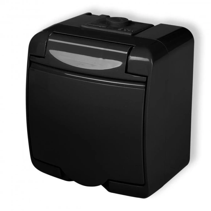 JUNIOR IP54 Gniazdo pojedyncze z uziemieniem schuko (klapka grafitowa: bez przesłon) popielaty / grafitowy 30GHE-1s KARLIK