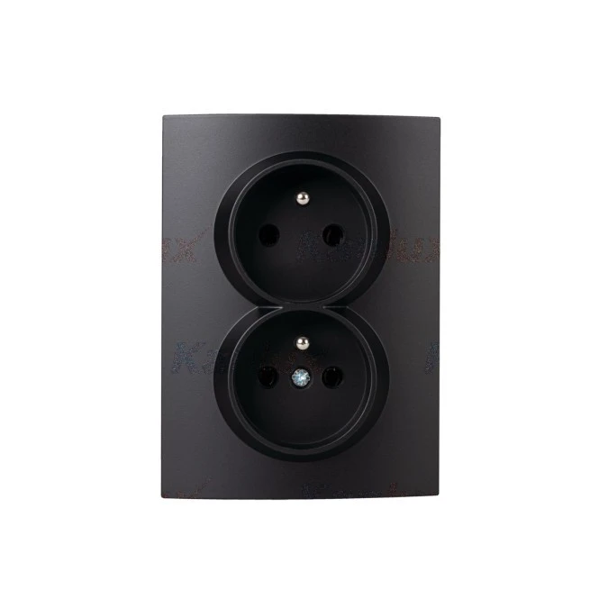 LOGI Gniazdo podwójne 2x2P+Z kompletne z przesłoną styków Czarny mat 33610