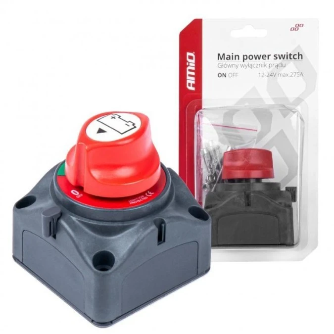 Wyłącznik zasilania akumulatora Hebel samochodowy 12V-24V 275A w obudowie AMIO
