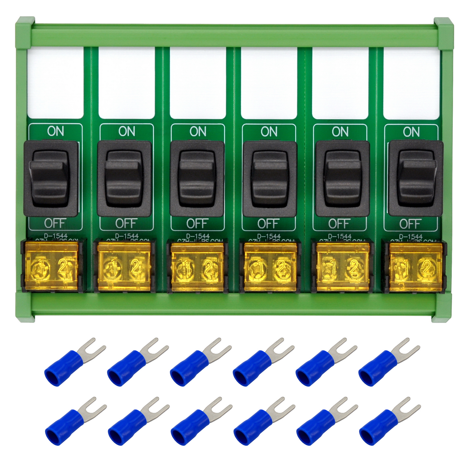 4. DIN Rail Mount 6 Channel Paddle Rocker Switch AC 115V 230V Power Distribution Strip Module 130.01