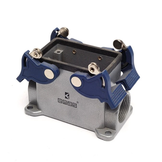 15. Przyłącze metalowe, puste, 10 pin 16 A, 2 x boczne przył. (montaż pow.), ręczne zamknięcia z rolką - plastikowe T0-EBM10GD24 73.85