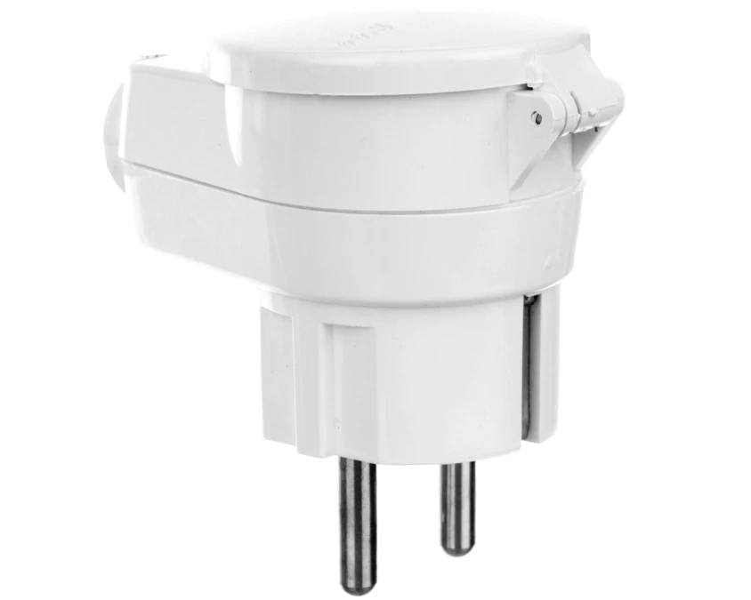 Rozdzielacz kątowy wtyczka-gniazdo z pokrywą z/u 16A 2P IP44 AWA-WGB biała 51.35