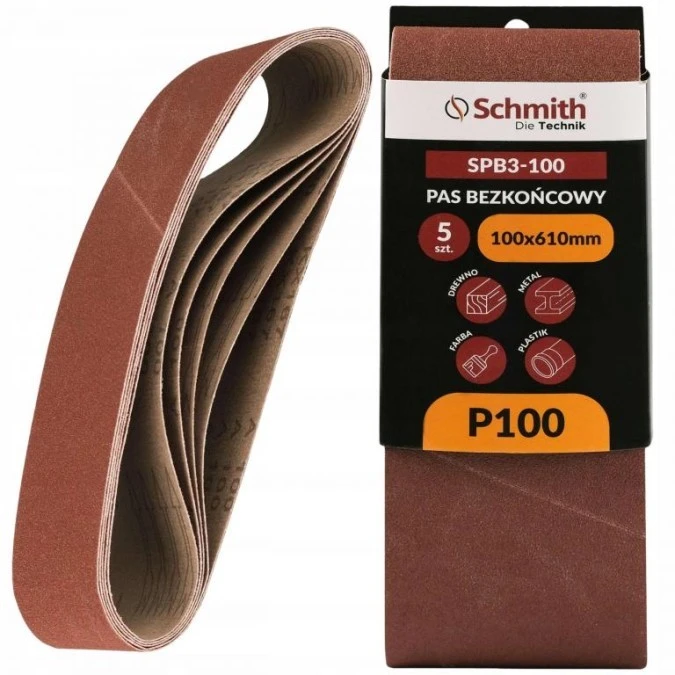 1. Pas bezkońcowy taśma papier ścierny P100 100x610mm 5szt Schmith 23.26