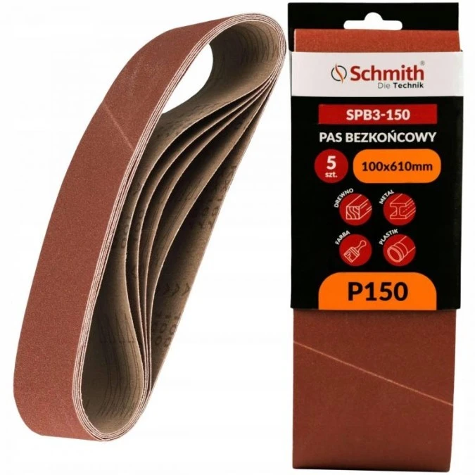 15. Pas bezkońcowy taśma papier ścierny P150 100x610mm 5szt Schmith 23.55