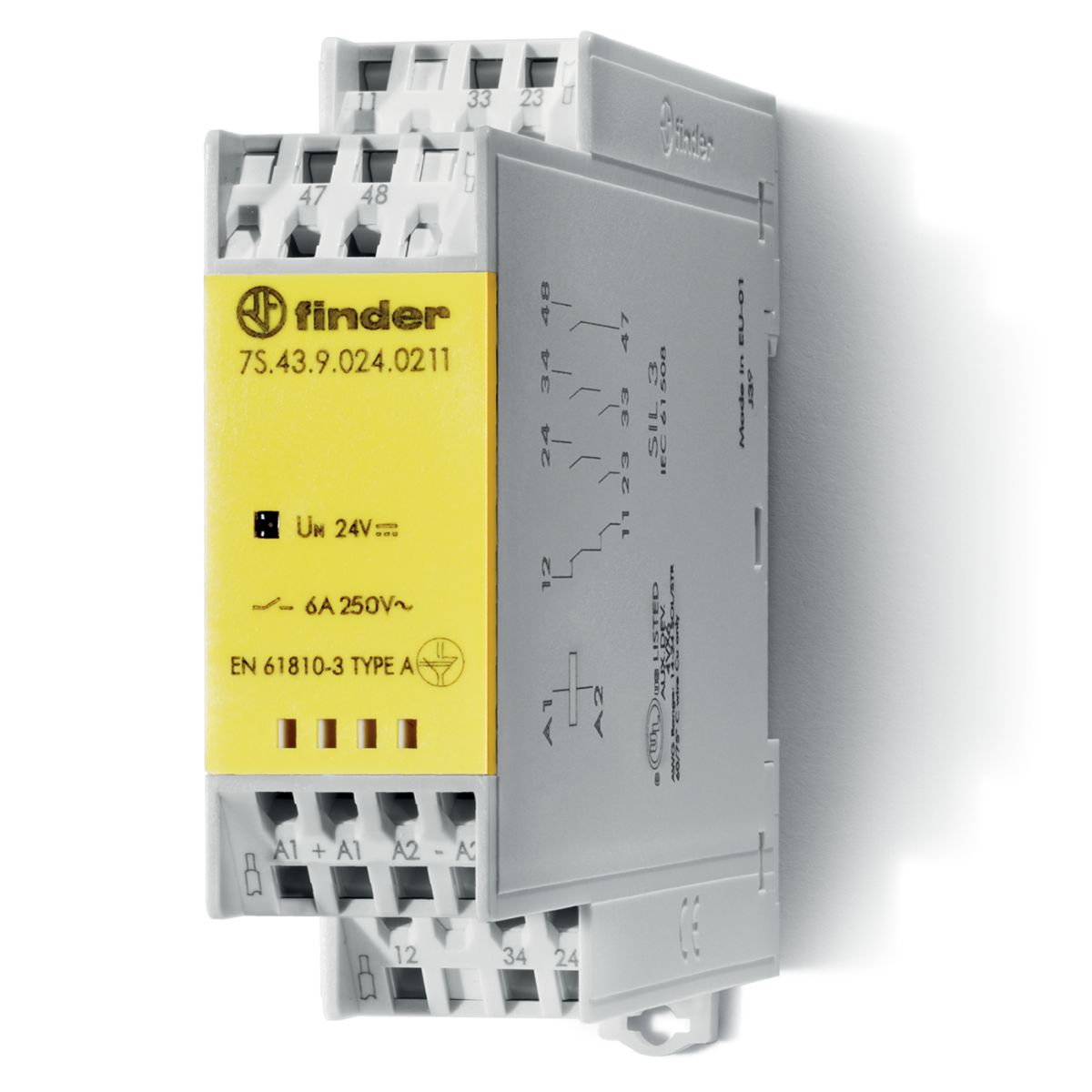 Przekaźnik niezatrzaskowy z wymuszonym prowadzeniem styków 24V dc 3PDT Finder, na szynę DIN
