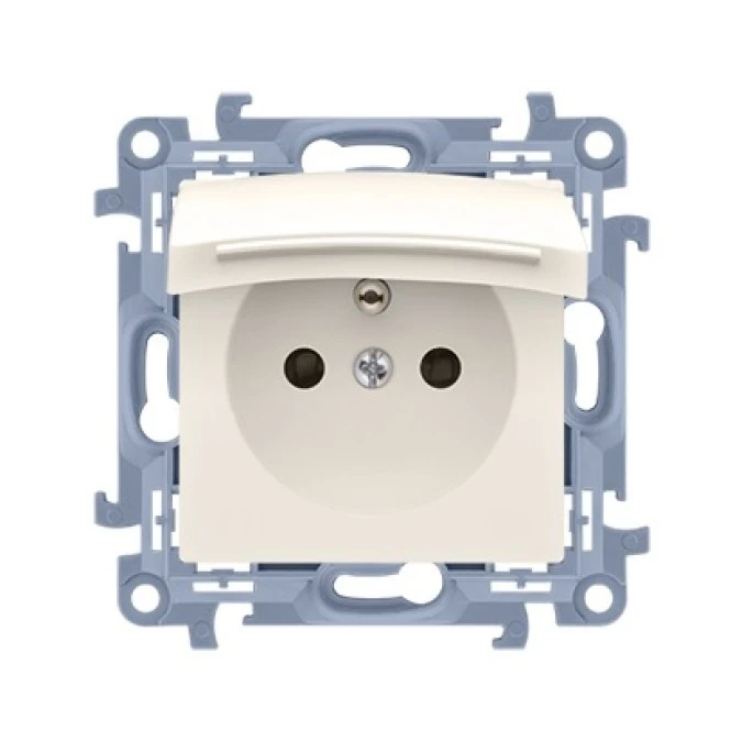 Simon 10 Gniazdo pojedyncze IP44 z przesłonami torów prąd. bez uszczelki klapka w kolorze kremowy, szybkozłącza, CGZ1BCUZ.01/41