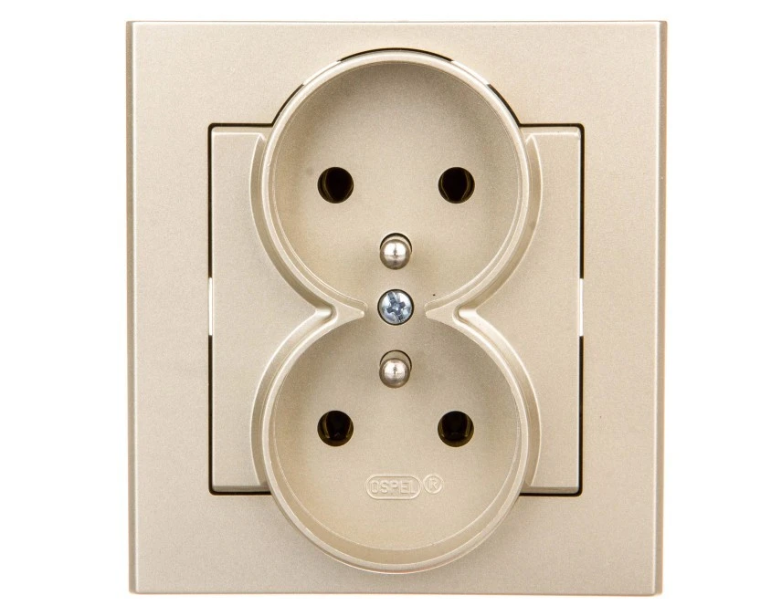 7. SONATA Gniazdo podwójne z uziemieniem IP20 z ramką szampański złoty GP-2RS/39 OSPEL 33.92