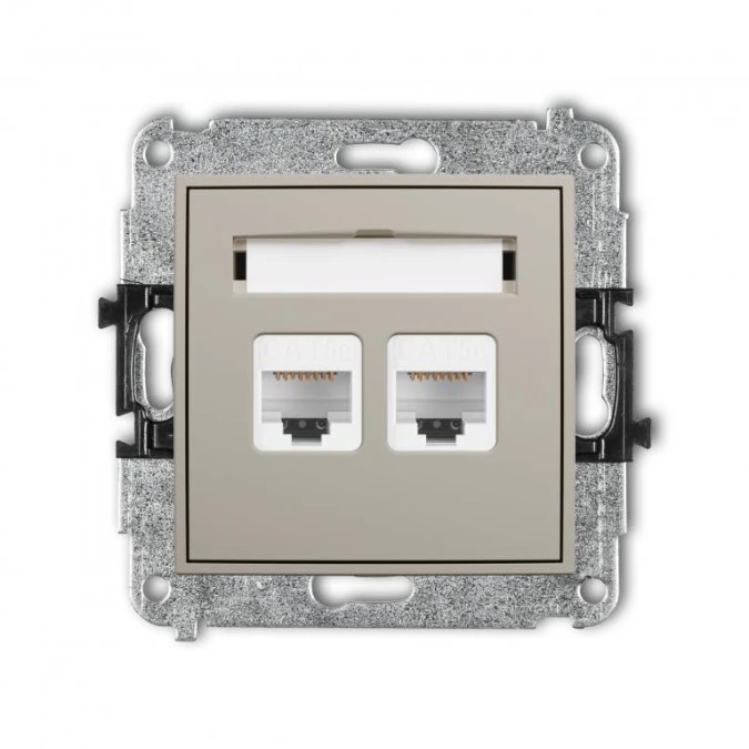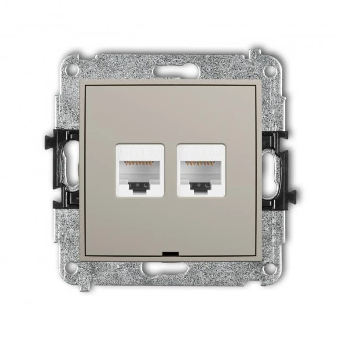 12. MINI Mechanizm gniazda komputerowego podwójnego 2xRJ45, kat. 5e, 8-stykowy, bez pola opisowego taupe 60MGKBO-2 108.94
