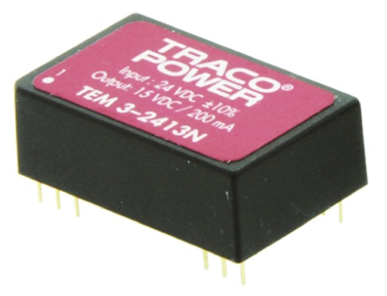 1. Przetwornica DC-DC, 3W, Uwe 21,6 → 26,4 V DC, Uwy ±12V dc, Iwy ±125mA, TRACOPOWER 79.53