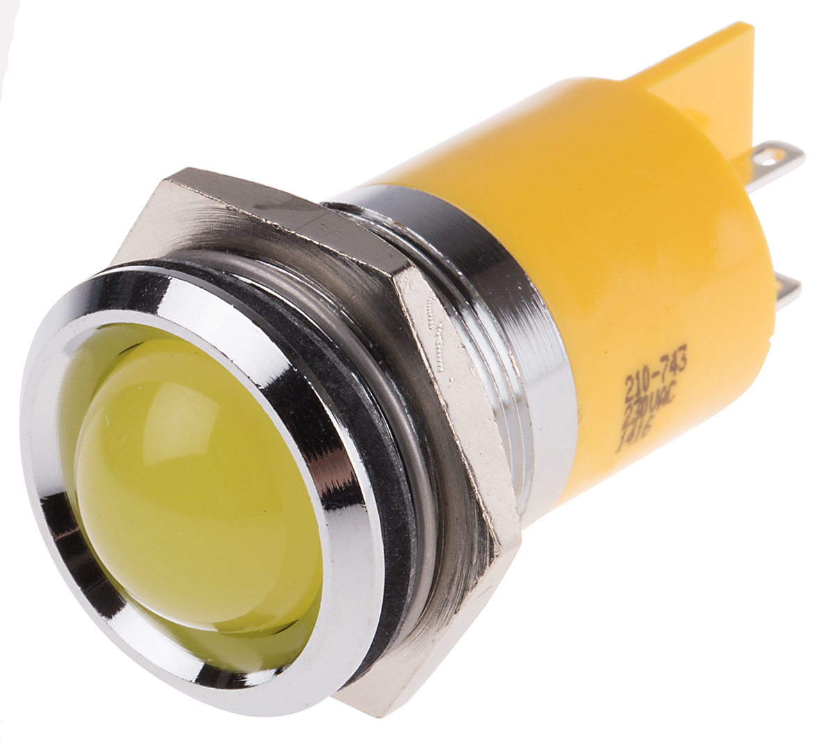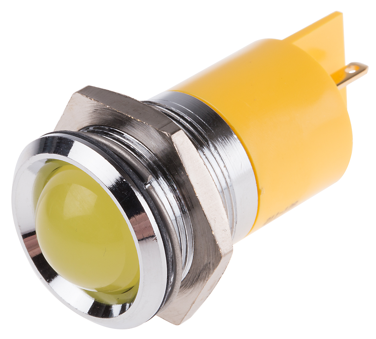10. Lampka kontrolna do montażu panelowego 12V, Żółta 22mm LED Chrom Końcówka lutownicza RS PRO 122.35