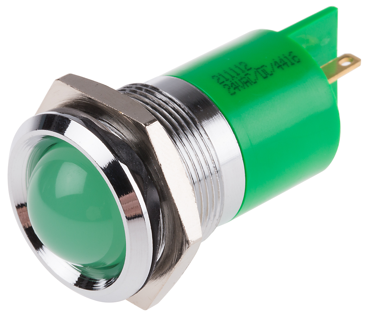 8. Lampka kontrolna do montażu panelowego 24V ac, zielona 22mm LED Chrom Końcówka lutownicza RS PRO 117.61