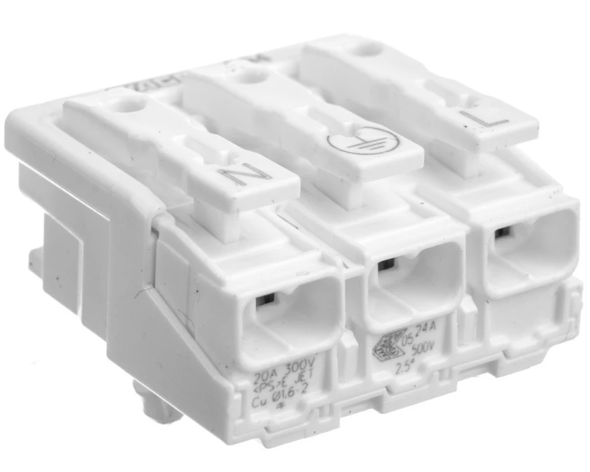 Złączka zasilająca 3-biegunowa ze stopkami bez styku PE 294-5013