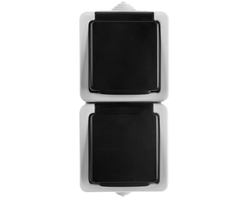 6. TEKNO Gniazdo hermetyczne podwójne 2x2P+0 pionowe z przesłoną styków 16A 250V szare IP54 25360 21.17