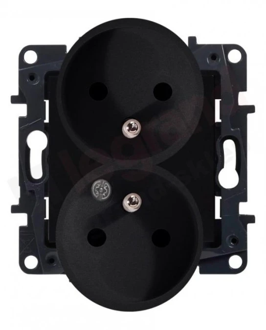 15. Niloe Step Gniazdo zasilające podwójne 2x2P+Z do ramek wielokrotnych, zaciski śrubowe, z przesłoną styków czarny 863534 21.35