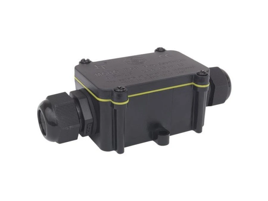 Prostokątna puszka instalacyjna IP68 2 wloty + złącze 3 torowe