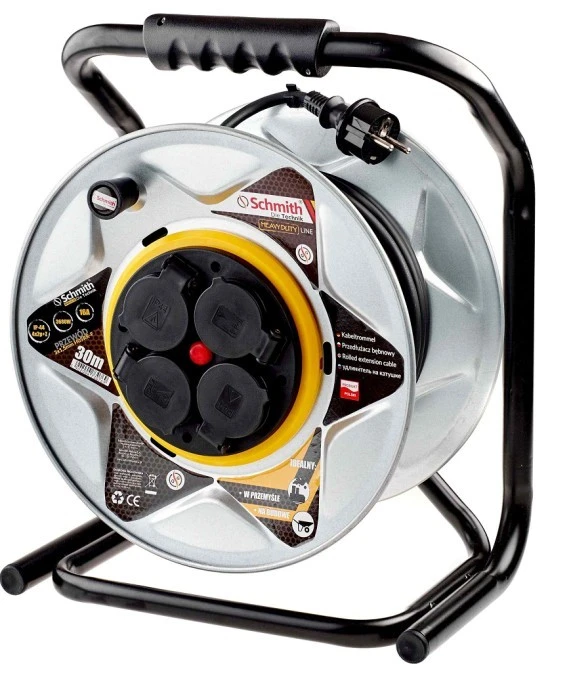 9. Przedłużacz bębnowy metalowy 3x2,5mm trzyżyłowy 4x2p+Z 50m przewód H05RR-F Schmith 840.34