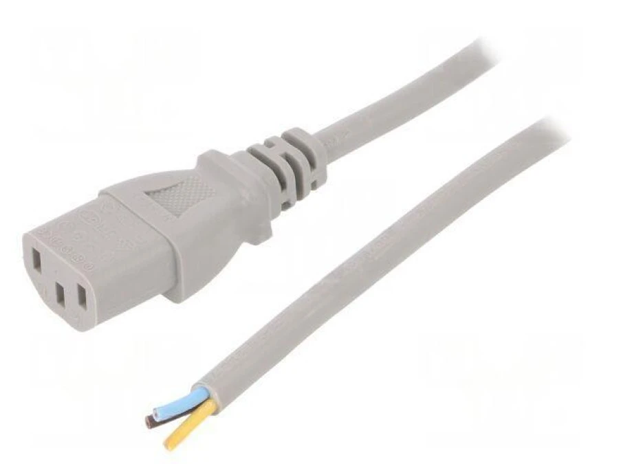 Kabel: 3X0,75Mm2, Iec C13 Żeński, 1M, 10A Lt-501 H05vv-F 0.75/3C Gry 1M End