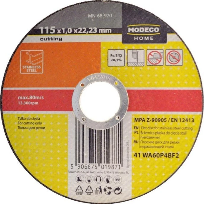 4. ŚCIERNICA DO CIĘCIA STALI NIERDZ. 115X1.0X22,23 MM PLASKA MN-68-970 /25szt./ 75.34