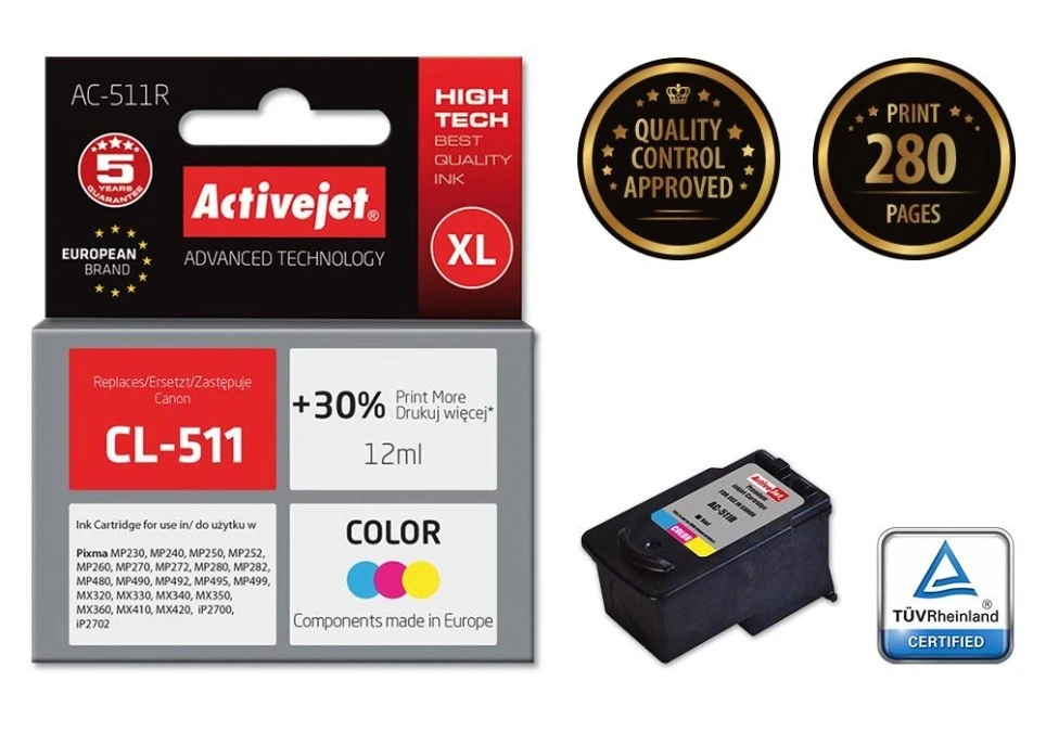 7. Tusz Activejet AC-511R (zamiennik Canon CL-511 Premium 12 ml kolor) 101.33