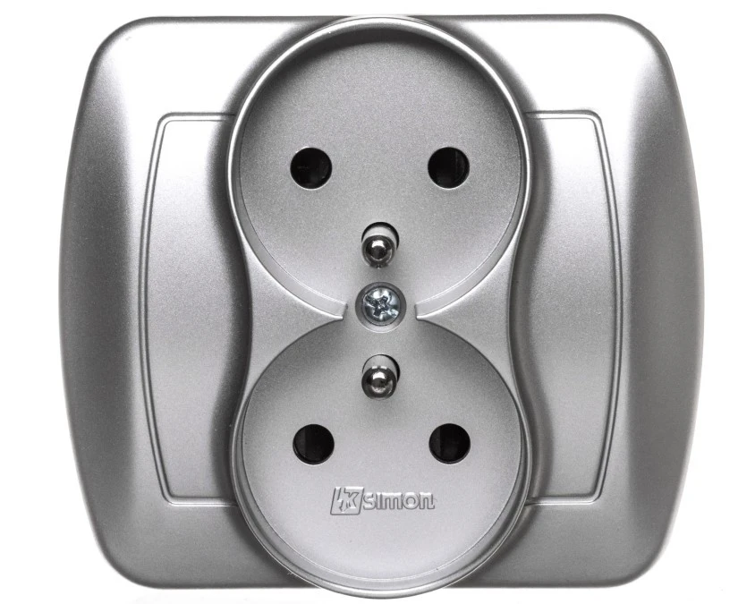 12. Simon Akord Gniazdo podwójne z/u 16A IP20 z przesłoną torów alumimium metalizowane AGZ2z/26 30.42