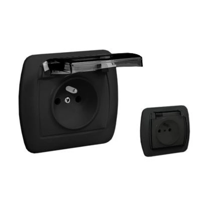 10. Simon Akord Gniazdo wtyczkowe z uziemieniem, bryzgoszczelne IP44, klapka transparentna, 16A, 250V, zaciski czarny AGZ1BE/49A 30.18