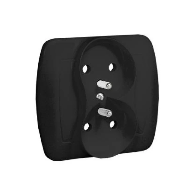 Simon Akord Gniazdo wtyczkowe z uziemieniem podwójne, z przesłonami torów prądowych, 16A, 250V, zaciski śrubowe czarny AGZ2Z/49