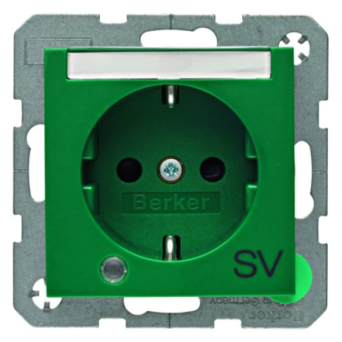 Gniazdo SCHUKO z lamką kontrolną polem opisowym i nadrukiem zielony połysk S.1/B.3/B.7 Glas 41108913