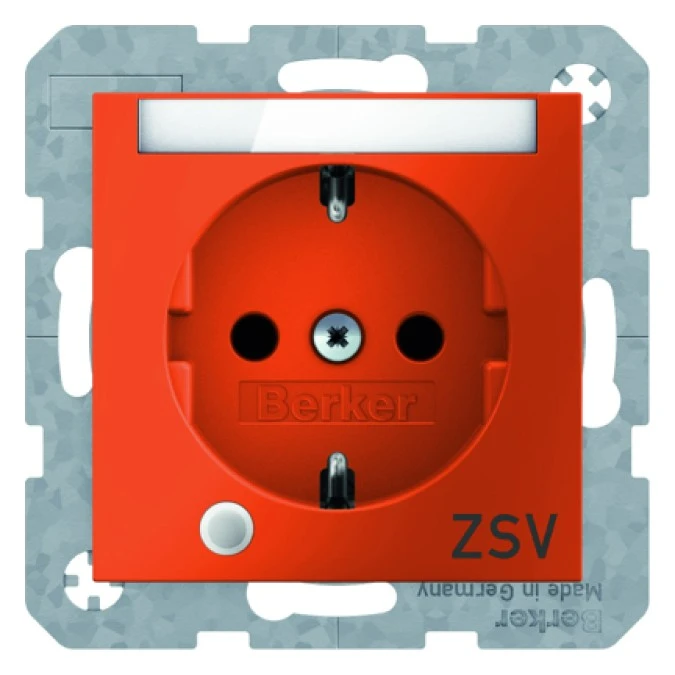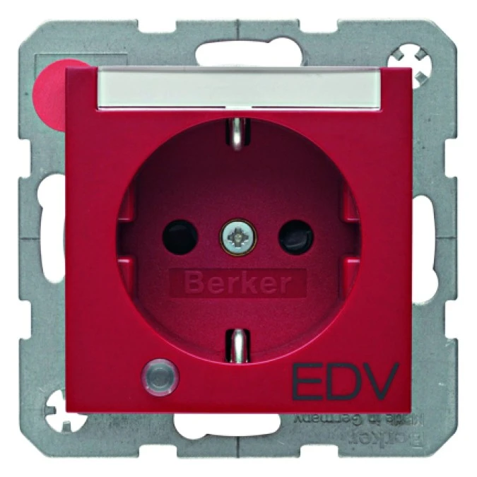 9. Gniazdo SCHUKO z lamką kontrolną polem opisowym i nadrukiem czerwony połysk S.1/B.3/B.7 Glas 41108915 391.12