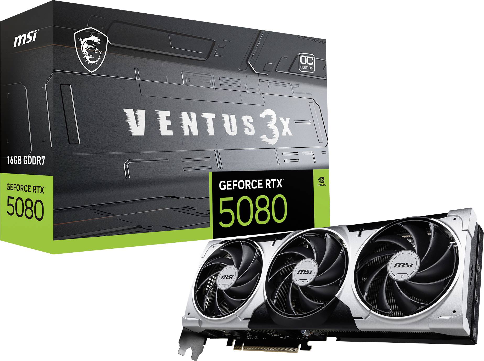 MSI Karta graficzna Nvidia RTX 5080 16GB VENTUS 3X OC PLUS 16 GB GDDR7 RAM PCIe x16 HDMI® 2.1, DisplayPort 2.1