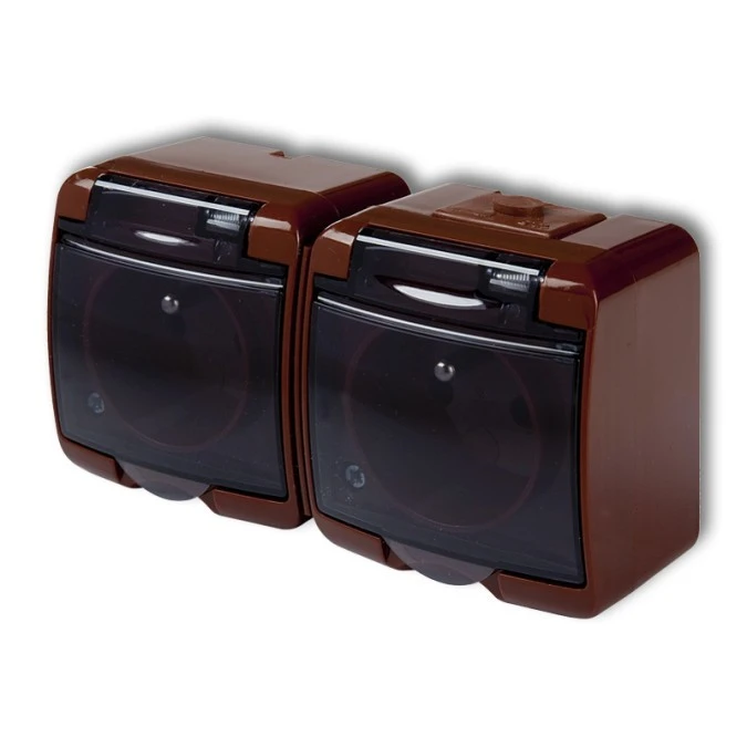 8. JUNIOR Gniazdo podwójne z/u (klapka dymna) brązowy IP54 4GHE-2d 29.43