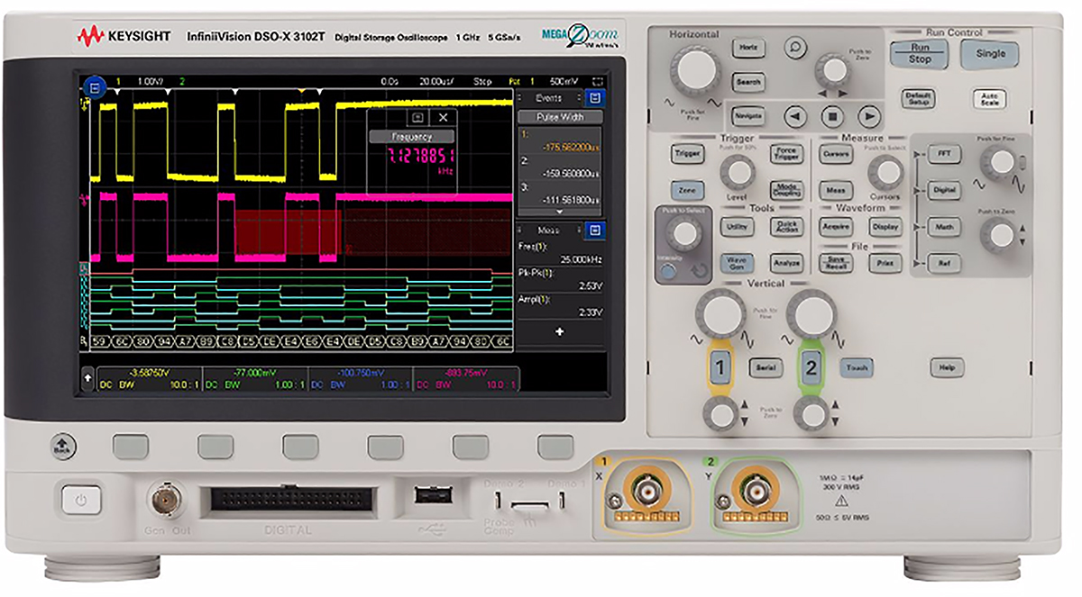 Oscyloskop 1GHz Keysight Technologies Stacjonarny Cyfrowy CAT I ±40 V DSOX3102T z kalibracją ISO CAN, IIC, LIN, RS232,