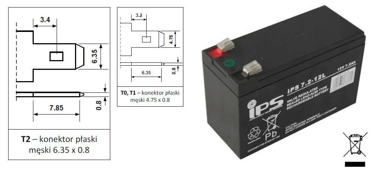 Akumulator VRLA AGM 12V 7,2Ah (żywotność 6-9lat) IPS 7.2-12L T2