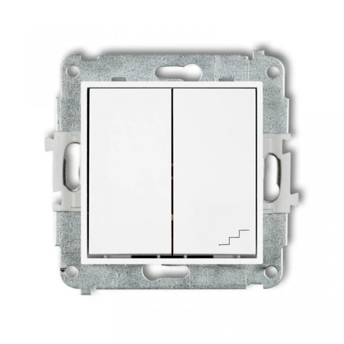 9. ICON Mechanizm łącznika jednobiegunowego ze schodowym (dwa klawisze bez piktogramów, osobne zasilanie) biały mat 25IWP-10.21 39.78