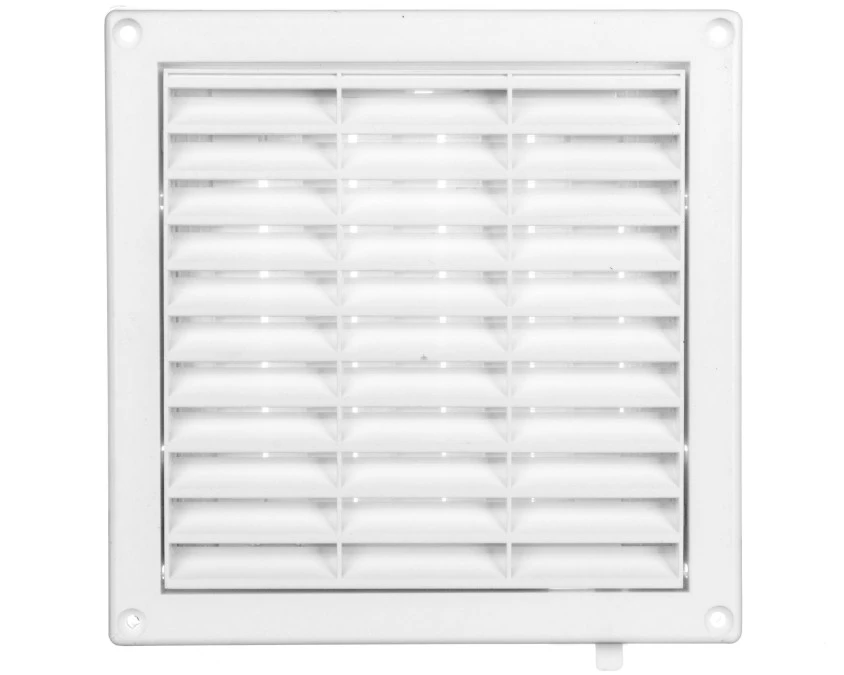 11. Kratka wentylacyjna 130x130mm fi 100mm biała żaluzja+sznurek rozpieracze T38 16.33