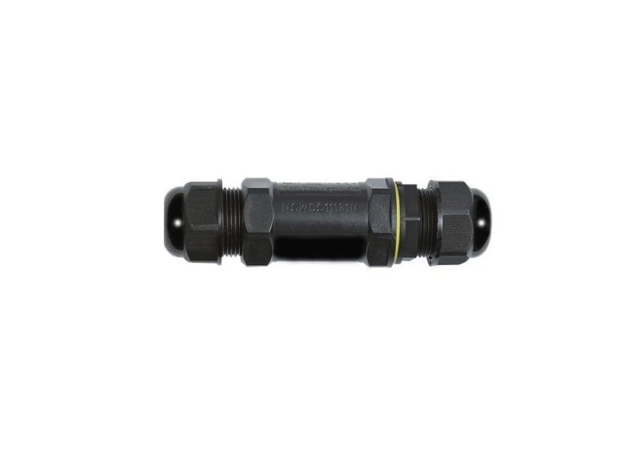 11. Mufa kablowa z dławikami na kable do 2x2,5mm2 hermetyczna IP68 PA66 prosta czarna NEKU 19.10