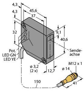 Turck Bezzwrotny czujnik fotoelektryczny LX12R Wysokość ochronna 295 mm
