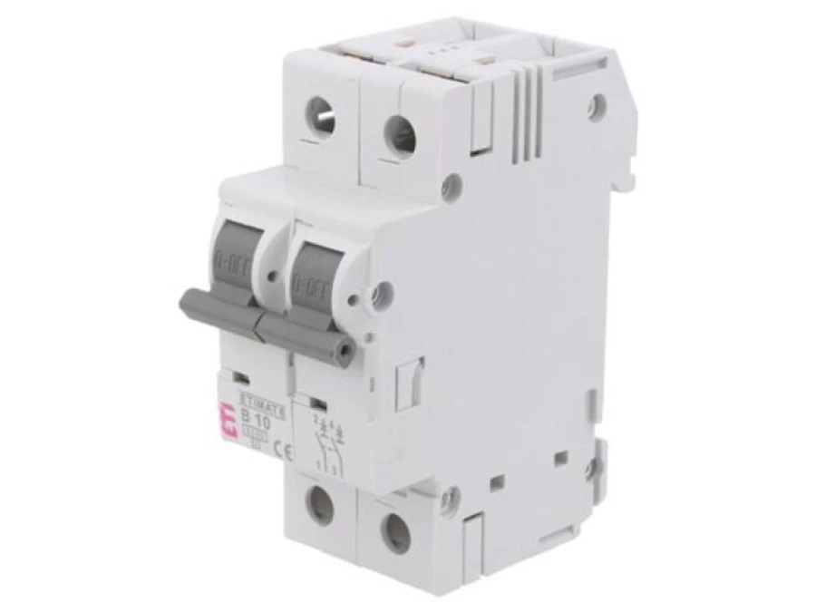 12. Wyłącznik nadprądowy, 230/400VAC, Prąd znamionowy: 10A, Bieguny: 2, 6kA, Szczelność: IP20 ETIMAT 6 2P B10 91.30