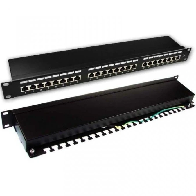Patch panel RACK 19" kat.6 24p STP z półką czarny Alantec